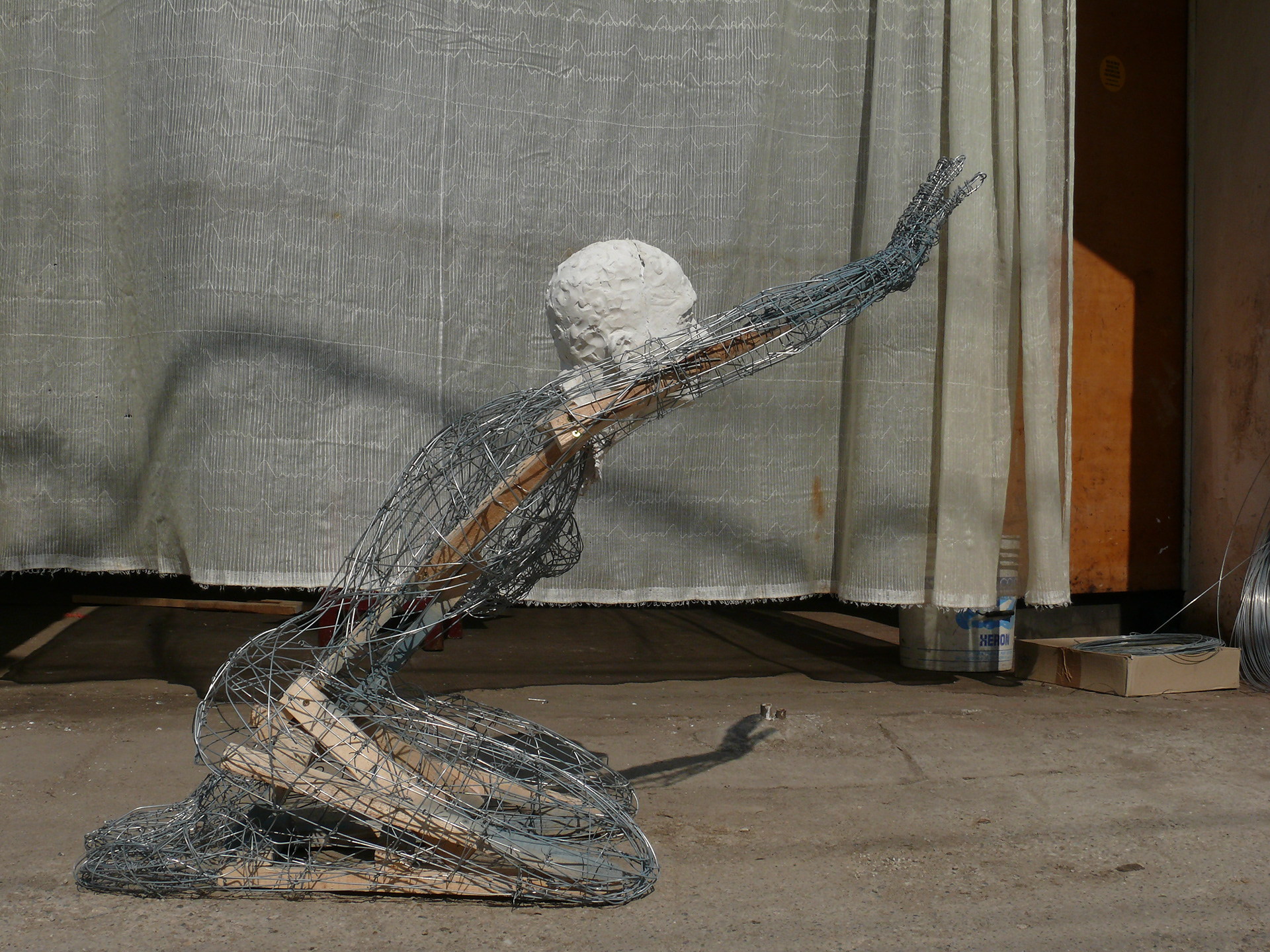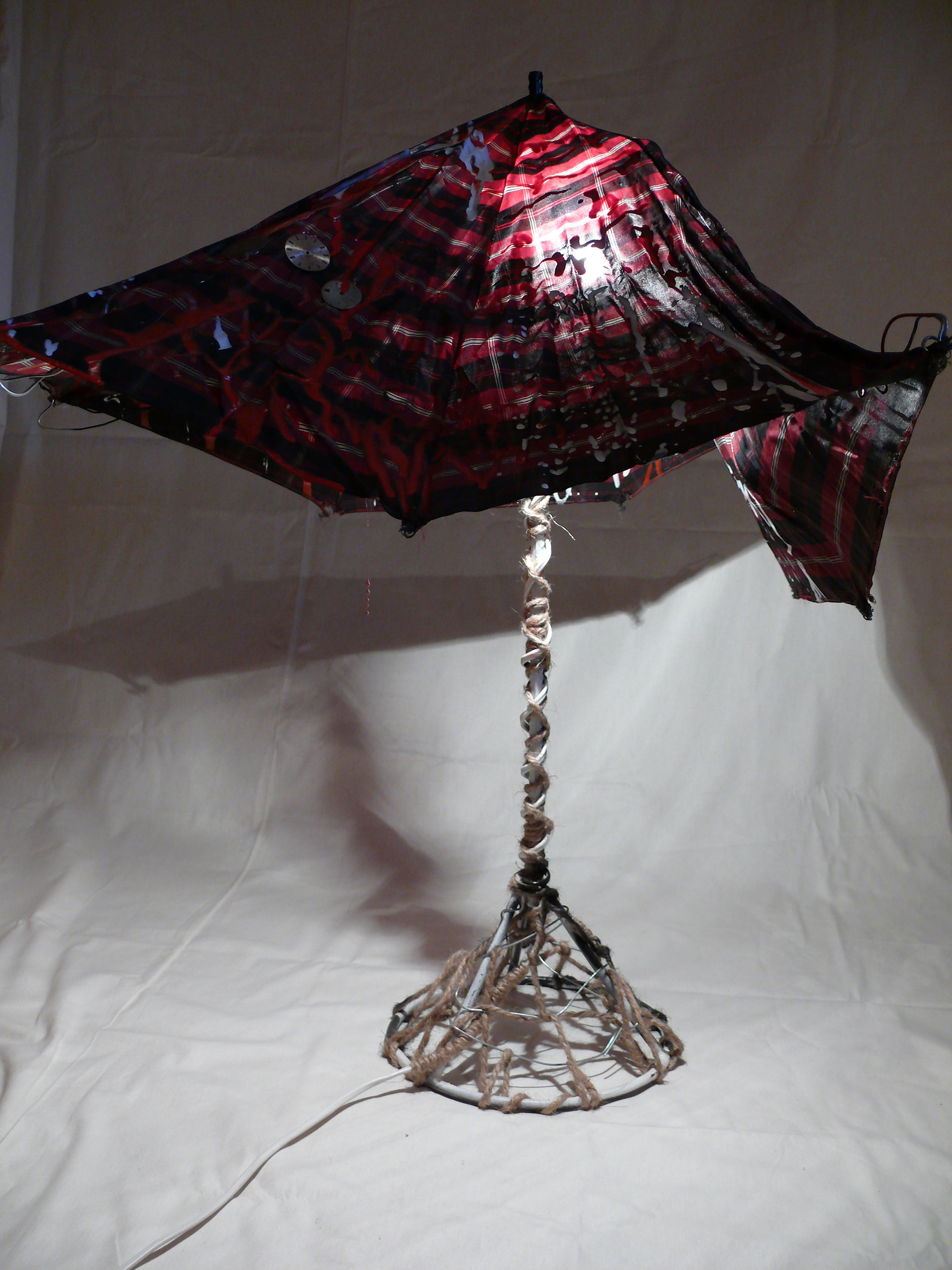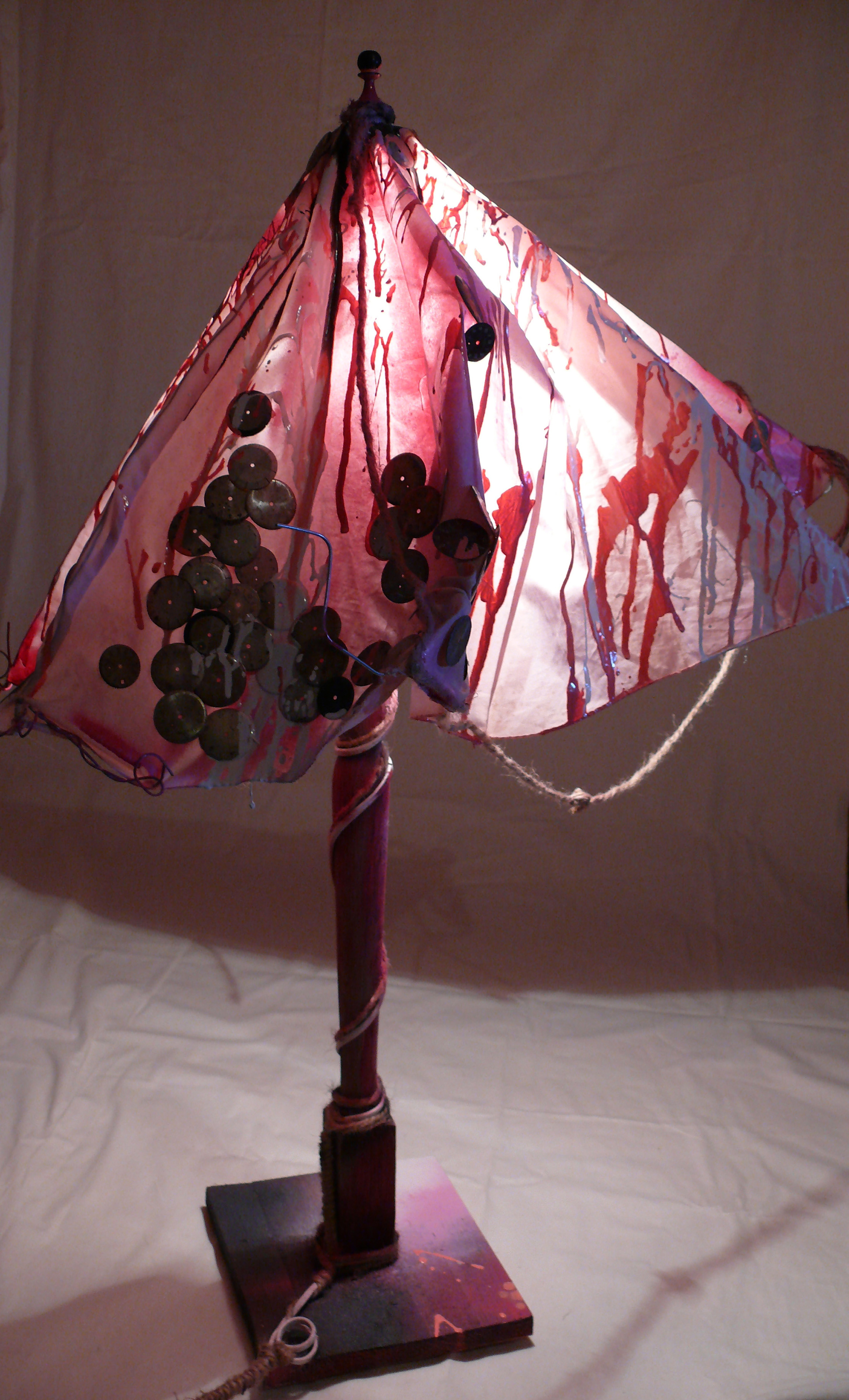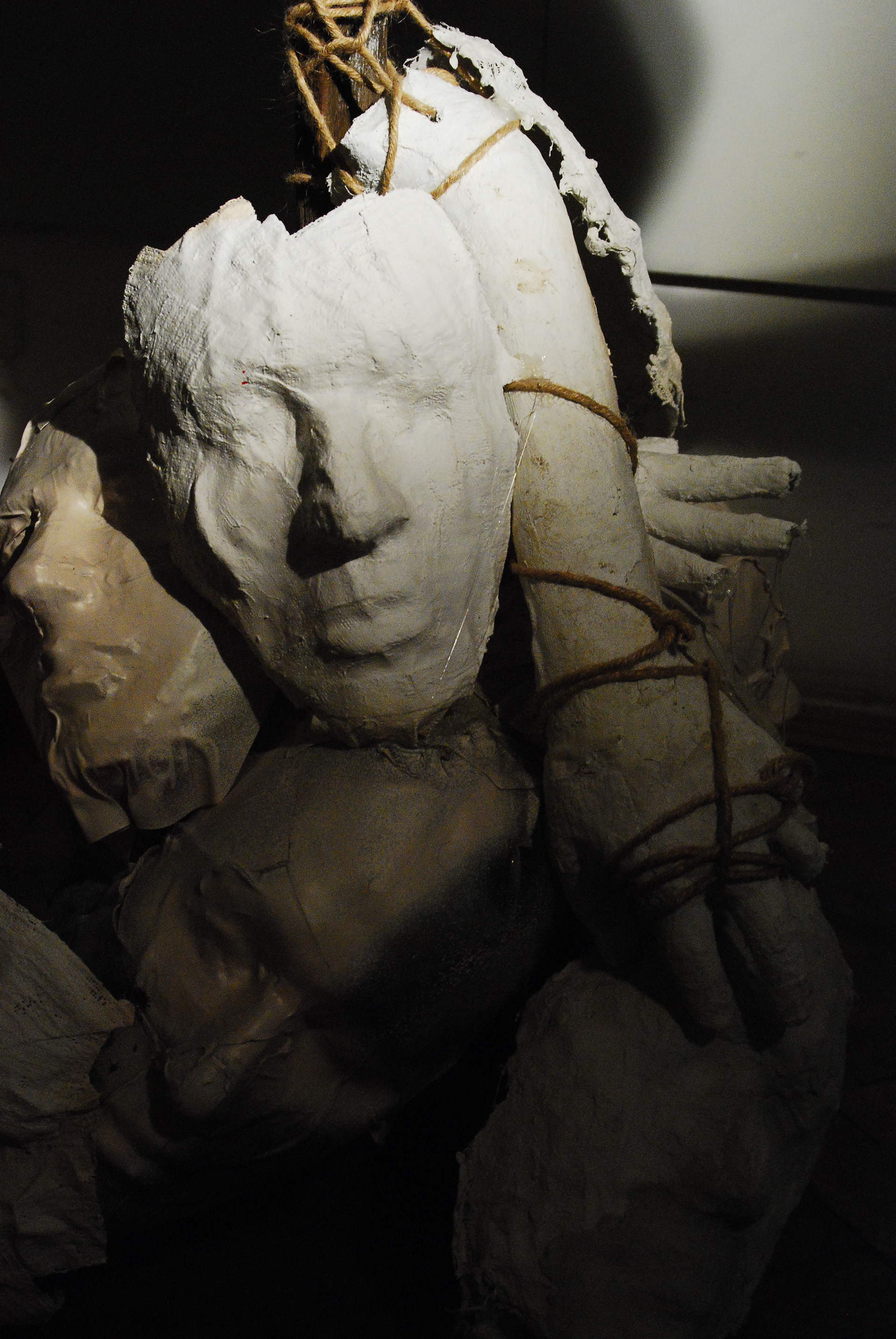 'Hamlet' Installation complete. A projector lights the sculpture casting a shadow symbolising Hamlet's father - the ghost with the crown-like shadow.